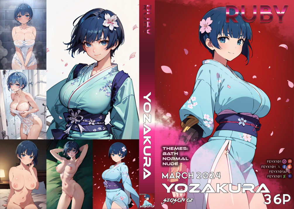 Set with 36 pictures of character Yozakura from Senran Kagura. The set have 3 themes: Bath, Normal and Nude. The set have 2 styles: Aing and MVLA